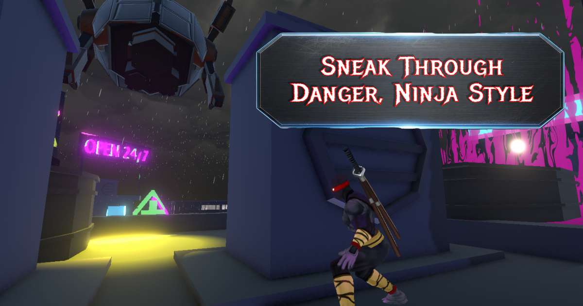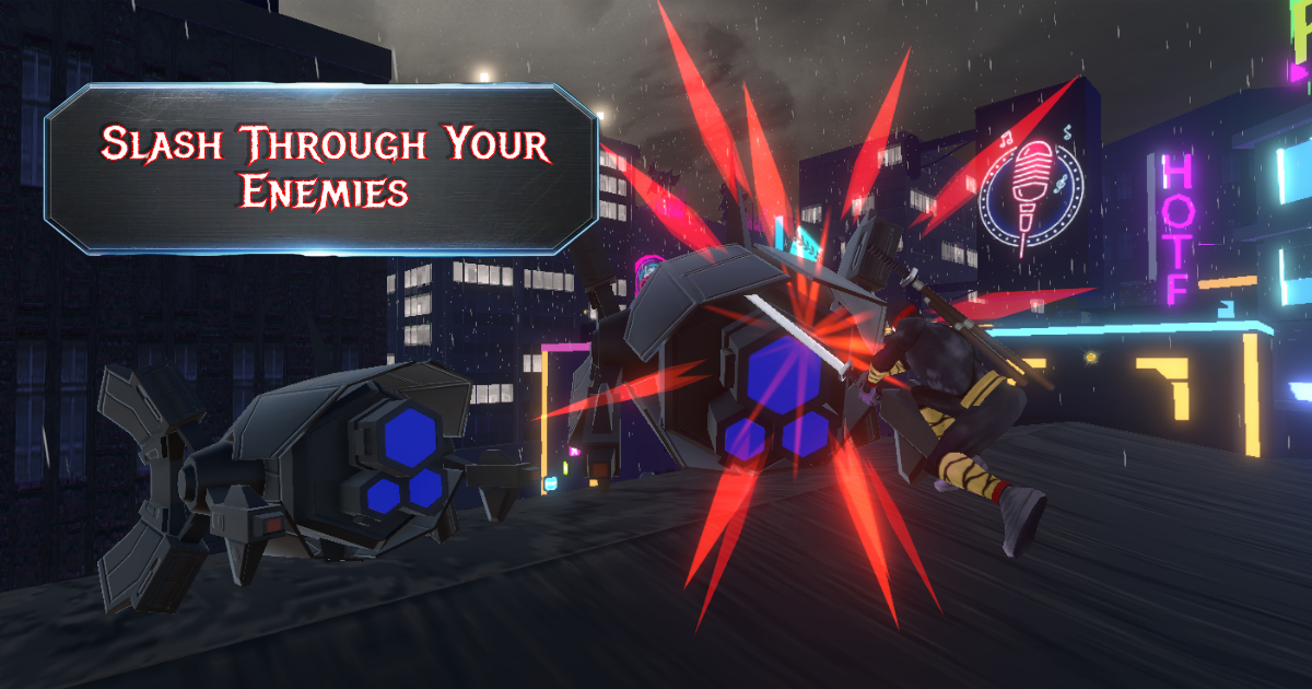 Become Kagejin, a mysterious ninja in a neon-lit cyberpunk world.